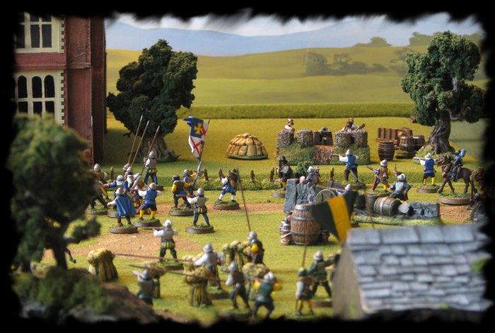 A Spanish warband makes way across a Suffolk wheat field. This is a nice example of a mixed skirmish force; pike and caliver armed infantry and Albanian Light Lancers. Figures from Foundry, Vendel & Eureka.