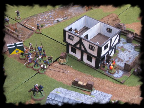 The Spanish advance on the toll house. The key to this scenario is moving quickly and being decisive. The roof of the toll house has been removed revealing musket and caliver armed troops within.