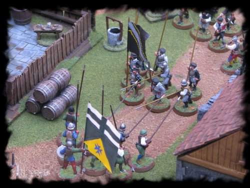 The English trained band arrive with pike and shot. The Spanish didn't concentrate on taking the toll booth and lost too many men, so it is only a matter of time before they are killed or broken.