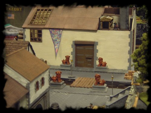 A view across the canal to the Dragon Brewery, the location of the unholy ritual to resurrect the ancient sorcerer, Jiang Zhioa. The temple dogs are from Ainsty Castings, nice aren't they?