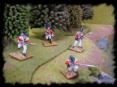 British Light Company skirmishers break out of the woods.