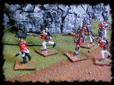 The British reinforcements finally turned up in the form of the impetuous Ensign Denny. He led men from the Light Company of the South Essex to the rescue. The British reinforcements did little to actually help, they didn't fire a shot but they did make it quite clear to the French that they ought to leave. If you have any comments, suggestions or just want to tell us what decent chaps we are please email us email: Voltigeur@SOTG |