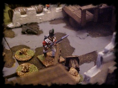 Under fire from the hill Pte Larkins dashes to the gold hidden under the table. (Click on the image to return to the full scenario) If you have any comments, suggestions or just want to tell us what decent chaps we are please email us email: Voltigeur@SOTG |