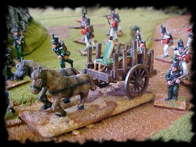 Lt Denbeigh's small force escorts Colonel Barkingside's furniture to the encamped North Essex Regiment. The cart is from GRIPPING BEAST and the furniture from EUREKA MINIATURES