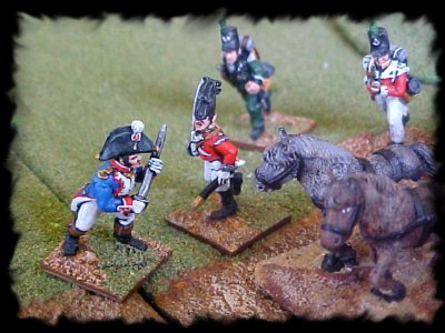 Scenario 4 Furniture Delivery Men Lt Chirac surrenders his sword to Lt Denbeigh. Young Denbeigh not only delivers his Colonel's furntiure but a captured French officer as well. (Click on the image to return to the full scenario) If you have any comments, suggestions or just want to tell us what decent chaps we are please email us email: Voltigeur@SOTG |